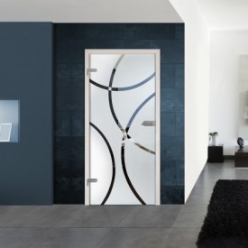 Unsere Glastür "Kurven" besteht aus einer nahezu vollflächig mattierten Ganzglastür. Das Dekor bestehend aus gebogenen Linien ist klar und durchsichtig.