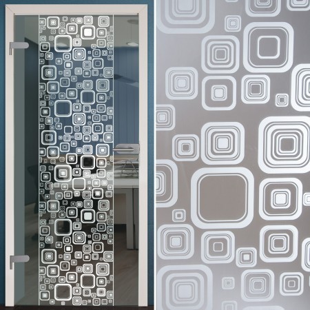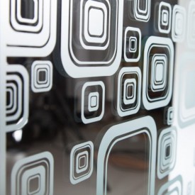 Die Glastür "Round Edges" wurde mit einem besonderem Dekor veredelt. Die Summe der vielen ineinander verschachtelten Vierecke ergibt ein faszinierendes Gesamtbild.