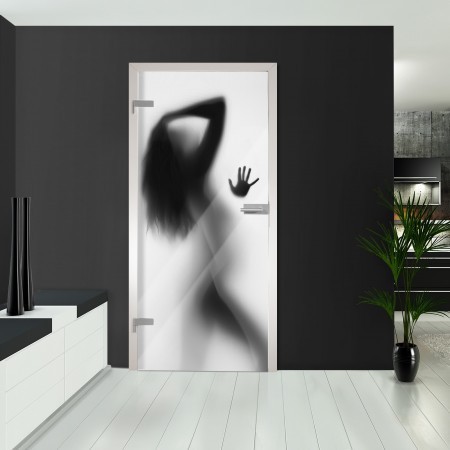 Anders wie bei anderen Anbietern, verwenden wir keine Folie, die zwischen zwei Glasscheiben montiert wird, sondern drucken direkt auf das Glas! Hierbei kommt ein ultraschneller UV-Flachbettdrucker zum Einsatz. Das Motiv "Schatten Frau" erweckt den Anschein, als würde sich eine Frau hinter der Tür rekeln.