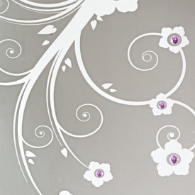 Unsere Glastür "Flowers" besticht durch ein Dekor, welches ein florales Muster zeigt. Das Dekor wurde vertikal gespiegelt damit es das komplette Türblatt ausfüllt.