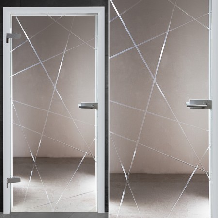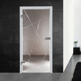 Linear angeordnete Kristallrillenschliffe sind das Hauptmerkmal dieser durchsichtigen Ganzglastüre! Insgesamt neun Rillenschliff-Veredelungen sind über das gesamte Türblatt verteilt und geben dieser Ganzglastür eine individuelle Note!