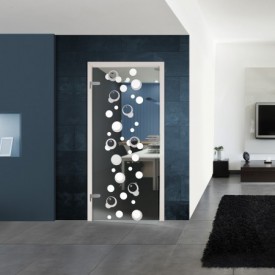 Die Glastür "Bubble" macht ihren Namen alle Ehre! Hier erhalten Sie eine Ganzglastür mit einem, aus mehreren Kreisen bestehendem Dekor!