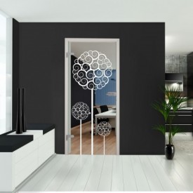 Unsere Glastüre "Tree" besitzt ein Dekor welches drei Bäume im modernen Look zeigen. Die Bäume auf dieser Glastür besitzen unterschiedliche Höhen, wobei der mittlere Baum extrem heraussticht. Das Türblatt ist durchsichtig, während das Dekor undurchsichtig ist.