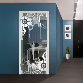 "Urban" - diesen Namen trägt die Glastür nicht ohne Grund! Das Dekor mit urbanem Motiv besteht aus einem abstraktem Muster.