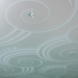 Auf die vollflächig mattierte Tür wurde ein interessantes Dekor in Verbindung mit Schmucksteinen gezaubert.