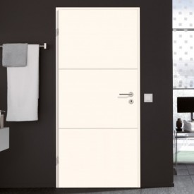 Zwei mal zwei parallel angeordnete V-Fugen verlaufen quer über das Türblatt dieser Innentür aus der Reihe "Skyline".