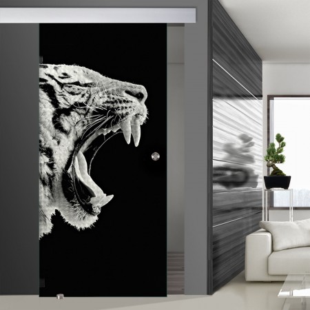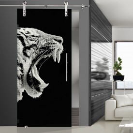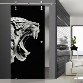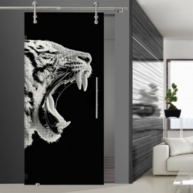 Das Motiv "Tigerkopf" zeigt -wie der Name bereits sagt- einen Tigerkopf, der sich über die Tür erstreck. Bitte beachten Sie, dass das Motiv auf die Gegenseite gelasert wird.