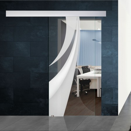 Das Motiv "Tube" zeigt einen sehr detailierten Verlauf und feine Linien auf einer Klarglas Schiebetür.