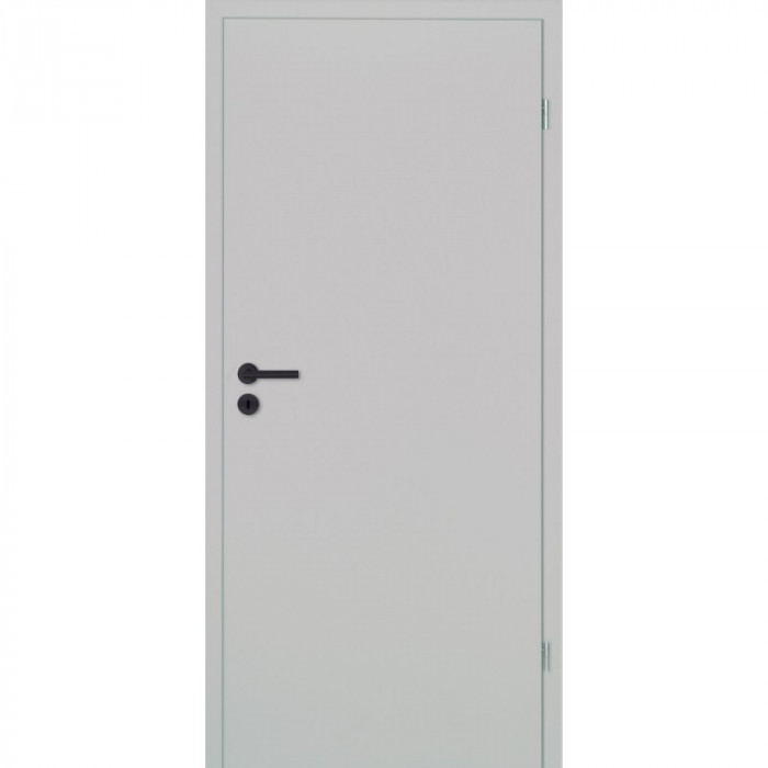 Diese Designtür von Lebo wird durch ein formgepresstes Türblatt, eine mehrschichtige Premium-Lack-Oberfläche in RAL-7047 und eine mit Harzen imprägnierte Kunst-Decklage zu einer zeitlos eleganten Innentür auch für ein kleines Budget.