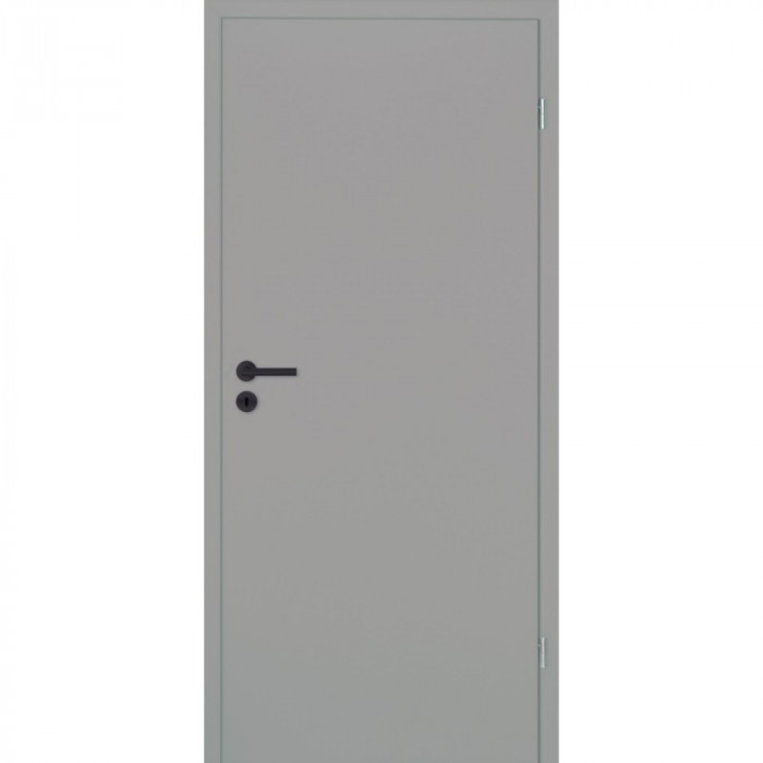 Diese Designtür von Lebo wird durch ein formgepresstes Türblatt, eine mehrschichtige Premium-Lack-Oberfläche in RAL-9006 und eine mit Harzen imprägnierte Kunst-Decklage zu einer zeitlos eleganten Innentür auch für ein kleines Budget.