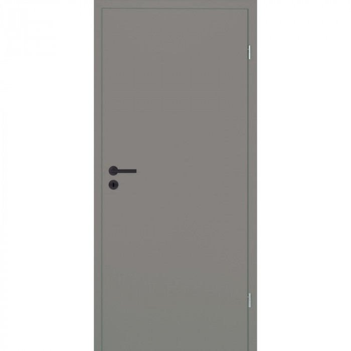 Diese Designtür von Lebo wird durch ein formgepresstes Türblatt, eine mehrschichtige Premium-Lack-Oberfläche in RAL-9007 und eine mit Harzen imprägnierte Kunst-Decklage zu einer zeitlos eleganten Innentür auch für ein kleines Budget.