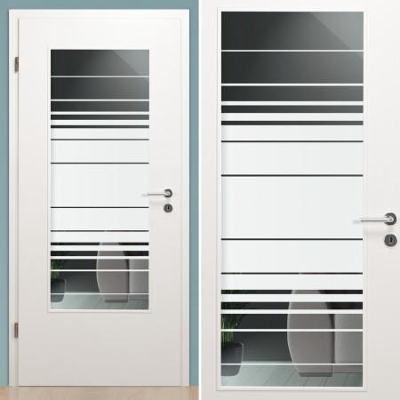 Mit diesem Lichtausschnitt können Sie beispielsweise eine Glastür mit einer Innentürverglasung kombinieren. Das Gleiche Dekor für jede Art von Tür!