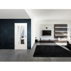 Bei dieser Variante für Innentürverglasungen ist die Silhouette klar und durchsichtig, während der Rest des Glases mattiert und undurchsichtig ist.