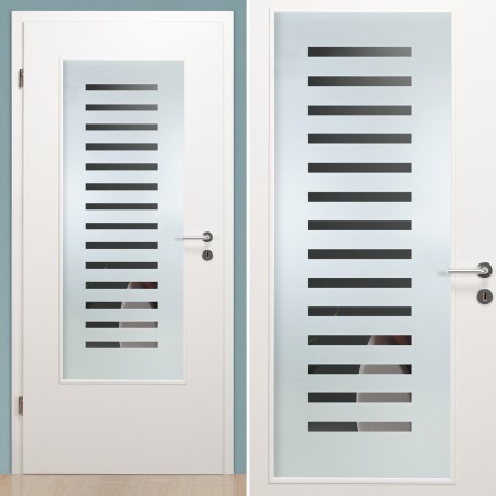 Das Dekor dieser Innentürverglasung besteht aus 14 horizontal angeordneten Balken.
