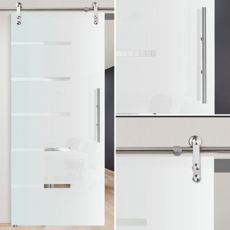 Mit dieser Glasschiebetür erhalten Sie eine Glastür mit zeitlosem Dekor in Streifenoptik.