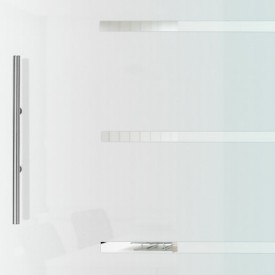 Die Streifen sind in dieser Variante durchsichtig, die Tür ist mattiert. Bei unseren Schiebetüren haben Sie die Wahl zwischen Griffmuschel und Griffstange.